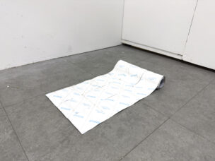 2017 Vinyl, vinyl backing, scotch tape. The final measurement of deer antlers in my preceding work, Trophy, came to be 1,114″. I used this number to project a vinyl shadow. The back of the vinyl ...